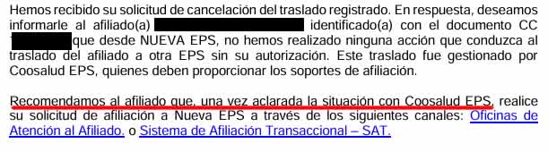 El 13 de mayo, Coosalud respondió oficialmente: reconocieron el traslado y lo justificaron usando el mismo correo falso. Dijeron que harían efectivo el traslado “como favor”, para el 1 de junio. Una burla.