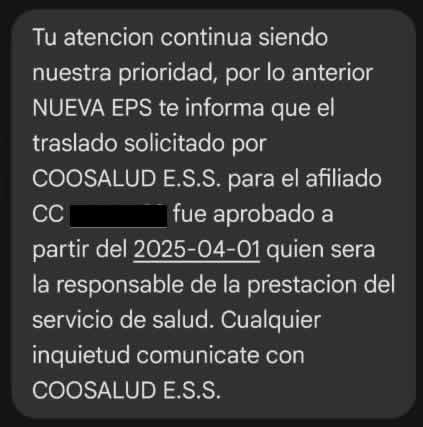 Recibió un mensaje de texto el 13 de marzo de 2025. La notificación decía que desde el 1 de abril sería afiliado a Coosalud EPS, sin que lo hubiera solicitado. Estaba en NUEVA EPS, pero eso ya no importaba. Lo habían cambiado como si fuera una mercancía, no un ser humano.